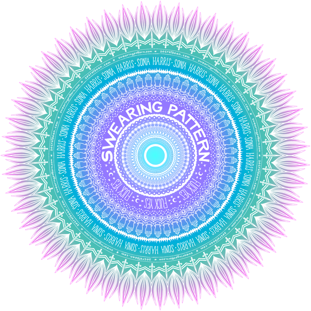 My name is Sonia, I'm a graphic designer and in 2017 I began to draw patterns with swear words to help me get through breast cancer treatment. Drawing them helped me handle pain when I didn't have the strength to speak, and while I'm happy to be able to swear out-loud again, today these patterns still help me manage the difficult physical limitations caused by treatment. If you like, you can read more about it here, or email with questions. And if you're interested in my more of work, you can take a look at my sprawling graphic design portfolio at soyabean.com -- Sonia Harris, July 2023